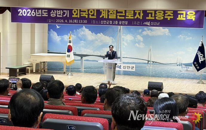 뉴스펀치 김용희 기자 | 신안군은 외국인 계절근로자의 인권 보호와 안전한 고용 환경 조성을 위해 지난 16일, 관내 농·어업 고용주를 대상으로 ‘2026년 상반기 외국인 계절근로자 고용주 인권 및 3대 보험 의무가입 교육’을 실시했다고 밝혔다.