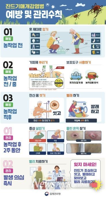 포천시보건소 관계자는 “농작업과 야외 활동이 많은 계절인 만큼 진드기 노출 위험이 높아질 수 있다”며 “시민 여러분, 특히 농업인 등 고위험군은 예방수칙을 철저히 지켜주시고, 진드기에 물린 뒤 발열 등 의심 증상이 있으면 신속히 의료기관을 방문해달라”고 말했다.