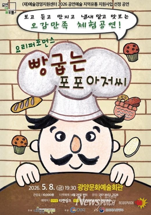 뉴스펀치 김용희 기자 | 광양시는 5월 가정의 달을 맞아 오는 5월 8일 오후 7시 30분 광양문화예술회관 대공연장에서 극단선물의 어린이 참여형 뮤지컬 ‘빵굽는 포포아저씨’를 선보인다고 밝혔다.