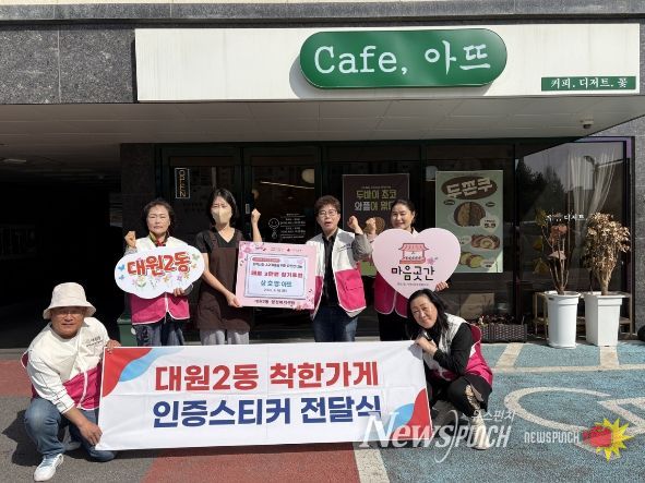 뉴스펀치 박상훈 기자 | 오산시 대원2동은 지난 16일 지역 내 카페 ‘아뜨’를 ‘착한날개(착한가게)’ 14호점으로 지정하고 인증스티커를 전달했다고 밝혔다.