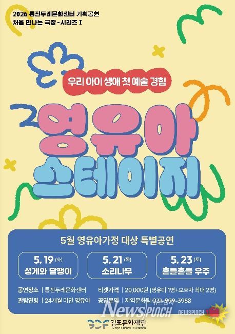 뉴스펀치 박상훈 기자 | 김포문화재단은 오는 5월 가정의 달을 맞아 통진두레문화센터 특별 기획으로 24개월 미만 영유아를 위한 체험형 공연 시리즈 '처음 만나는 극장 - 영유아 스테이지'를 선보인다.