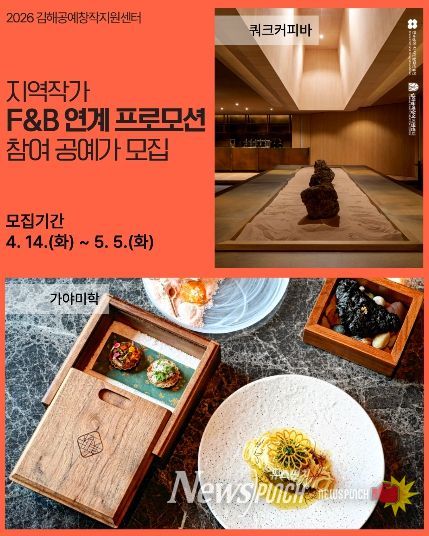 뉴스펀치 박세훈 기자 | (재)김해문화관광재단클레이아크김해미술관에서 운영하고 있는 김해공예창작지원센터는 '지역작가 F·B 연계 프로모션'에 참여할 공예가 모집을 지난 14일부터 시작해 오는 5월 5일(화)까지 진행한다고 밝혔다.