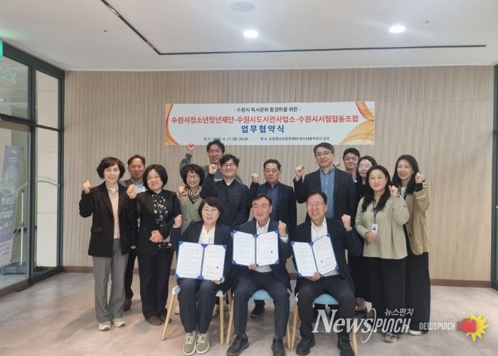 뉴스펀치 박상훈 기자 | 수원시 도서관사업소와 수원시청소년청년재단, 수원시서점협동조합이 지역 독서문화 활성화와 시민 독서활동 증진을 위해 협력하기로 했다.