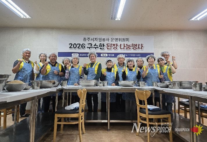 뉴스펀치 이현승 기자 | 충주시자원봉사운영위원회(위원장 박영찬)는 지난 17일, 충주 항아골(대표 김명숙)에서 지역 내 소외계층의 건강한 식생활 지원을 위한 ‘2026 구수한 된장 나눔’ 행사를 가졌다.