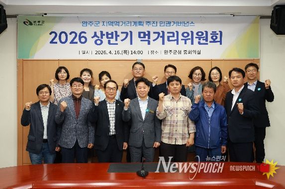 뉴스펀치 최영남 기자 | 완주군이 지난 16일 군청 4층 중회의실에서 먹거리 위원 20여 명이 참석한 가운데 ‘2026년 상반기 먹거리위원회’를 열고 군민 모두가 상생하는 지속 가능한 먹거리 정책 수립에 나섰다.