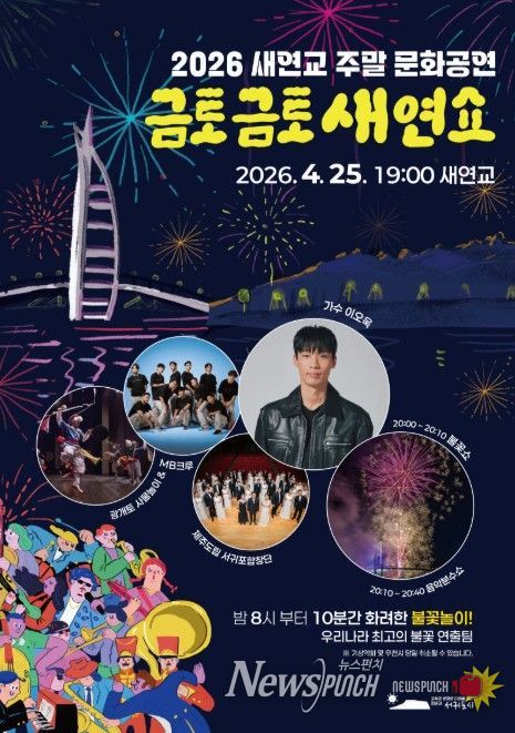 뉴스펀치 김용희 기자 | 서귀포시 대표 야간관광이벤트인 ‘금토금토 새연쇼’의 개막공연이 4월 25일 새연교 일원에서 개최된다. 개막일이 바로 앞으로 다가오면서, 시민들과 관광객, 지역상인들의 관심이 높아지고 있다.