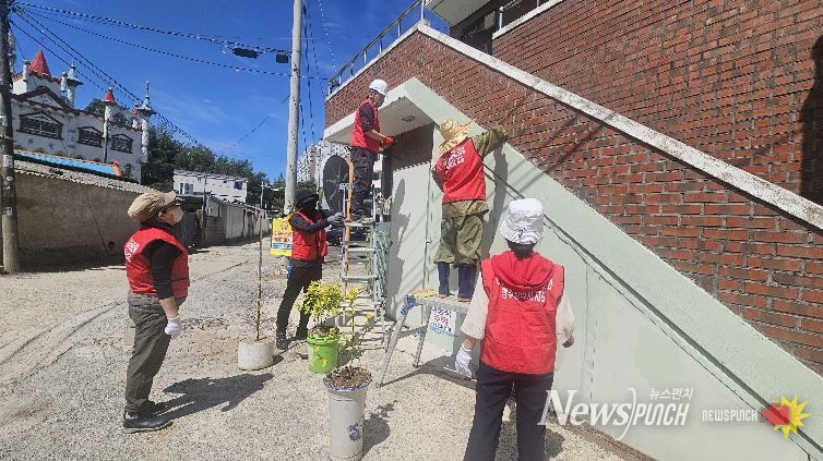 협회 회원 20여 명이 고압 세척기를 활용한 외벽 정비부터 균열 보수, 방수 처리, 페인트 도색까지 진행했다.