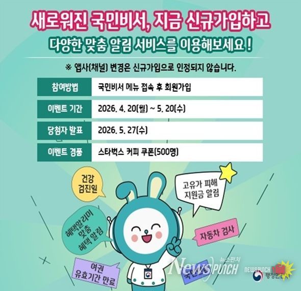 행정안전부는 서비스 활성화를 위해 4월 20일부터 5월 20일까지 신규 가입자 중 500명을 추첨하여 음료 쿠폰을 제공하는 이벤트도 함께 진행한다.