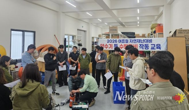뉴스펀치 김용희 기자 | 전남 함평군이 여름철 집중호우에 대비해 양수기 사용법 교육훈련을 실시하고 재난 대비 태세에 나섰다.