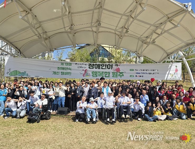 뉴스펀치 조평훈 기자 | 원주시지역사회보장협의체 장애인분과는 장애인의 날을 기념해 지난 18일 기업도시 샘마루공원에서 개최한 장애인식 개선 캠페인 ‘장애인이 행복한 원주’를 성황리에 마쳤다.