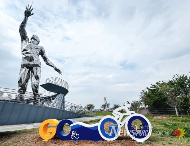 뉴스펀치 김용희 기자 | 고흥군은 지속 가능한 친환경 자전거 여행 활성화와 브랜드화를 위해 거금휴게소에 ‘블루마린 자전거 여행’ 포토존 조형물을 조성했다고 밝혔다.