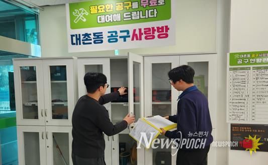 대촌동에 거주하는 한 주민은 “선반을 설치하려고 드릴이 필요했는데, 한번 쓰려고 사기엔 부담스러웠다”면서 “공구 사랑방 덕분에 비용도 아끼고, 편리하게 작업을 마칠 수 있었다”라며 만족감을 전했다.