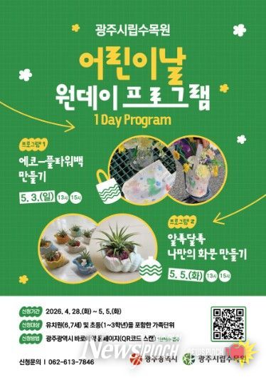 뉴스펀치 김용희 기자 | 광주광역시 시립수목원은 어린이 가족이 함께 하는 ‘수목원 어린이날 원데이 프로그램’ 참가자를 오는 28일부터 선착순 모집한다.