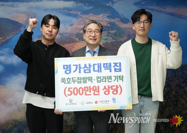 뉴스펀치 김용희 기자 | 전남 나주시가 가정의 달을 맞아 명가삼대떡집으로부터 500만 원 상당의 후원물품을 기탁받아 지역 내 취약계층을 위한 나눔을 실천하며 따뜻한 지역공동체 조성에 나섰다.