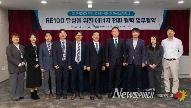 뉴스펀치 김용희 기자 | 제주국제자유도시개발센터는 제주에너지공사와 ‘RE100 달성을 위한 에너지 전환 협력 업무협약’을 체결하고, 재생에너지 도입 확대와 에너지 전환 관련 사업 발굴을 위한 협력체계를 구축한다고 밝혔다.