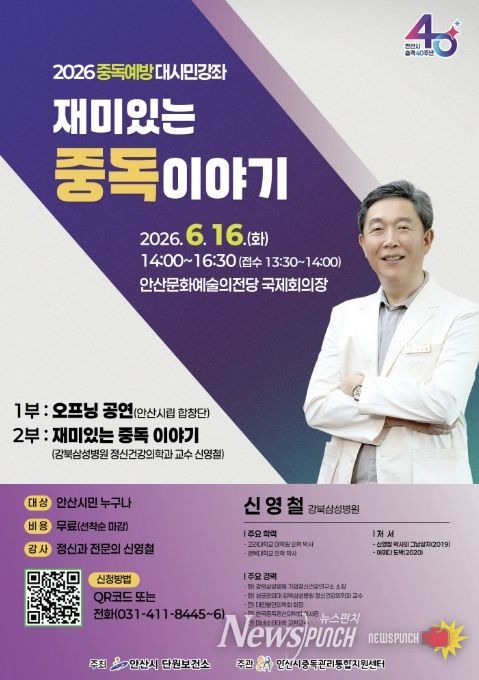 강좌는 2부로 진행된다. 1부에서는 안산시립합창단 공연이 열려 시민들에게 정서적 안정과 힐링의 시간을 제공할 예정이다. 이어 2부에서는 강북삼성병원 정신건강의학과 신영철 교수가 ‘재미있는 중독 이야기’를 주제로 강연을 진행한다. 강연에서는 일상 속 중독의 다양한 사례와 예방·극복 방법을 알기 쉽게 전달할 계획이다.