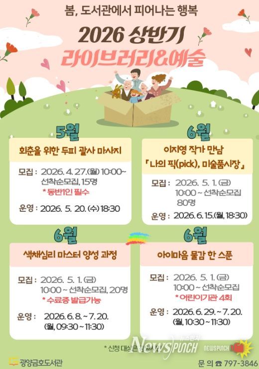 뉴스펀치 김용희 기자 | 광양금호도서관은 가정의 달을 맞아 시민들이 독서와 문화를 함께 즐길 수 있는 다양한 프로그램을 운영한다.