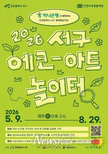 뉴스펀치 정홍균 기자 | (재)인천서구문화재단(대표이사 김성하)은 하나은행과 함께하는 2026년 ‘서구 에코-아트놀이터 시즌3’를 운영한다. 이는 도심 속 생태환경을 주제로 한 가족 참여형 문화예술교육 프로그램이다.