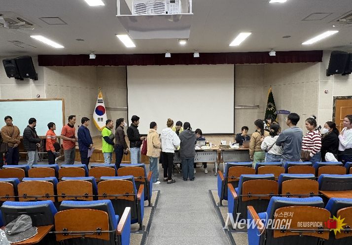 뉴스펀치 김용희 기자 | 화순군은 지난 22일 화순군농업기술센터 대강당에서 외국인 계절근로자를 대상으로 단체 지문 등록을 실시했다고 밝혔다.