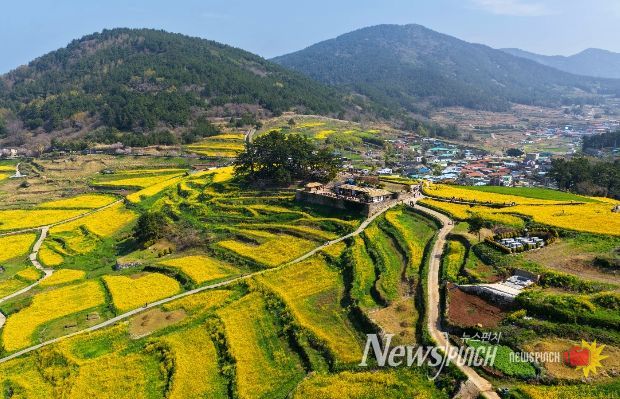 뉴스펀치 김용희 기자 | 유채꽃으로 노랗게 물든 청산도 풍광이 눈길을 사로잡는다.