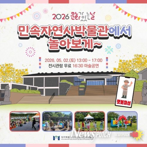 뉴스펀치 김용희 기자 | 제주특별자치도 민속자연사박물관은 오는 5월 2일 오후 1시 박물관 야외 광장에서 2026년 ‘문화가 있는 날’ 첫 행사인 ‘민속자연사박물관에서 놀아보게~’를 개최한다.