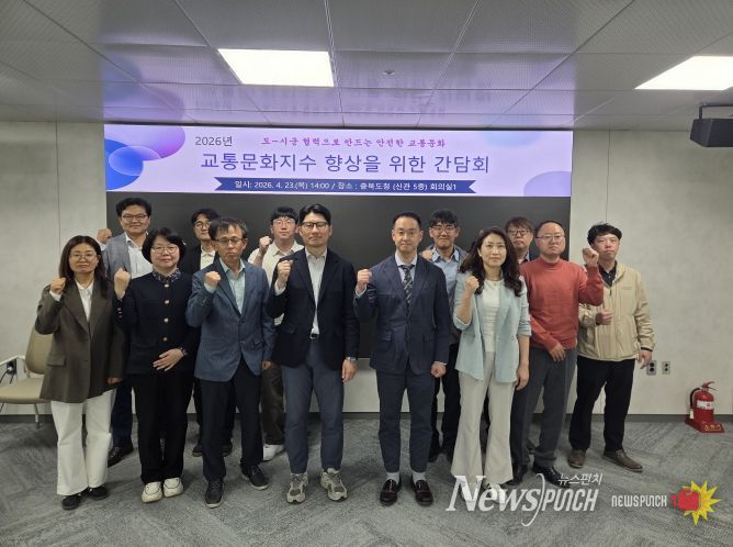 뉴스펀치 이현승 기자 | 충북도가 2026년 교통문화지수 상위권 진입을 목표로 시군과의 협력체계를 구축하기 위해 23일 도청 회의실에서 ‘교통문화지수 향상을 위한 시군 간담회’를 개최했다.