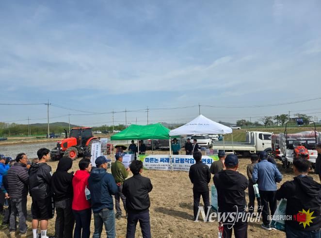 뉴스펀치 정홍균 기자 | 군산시농업기술센터는 대야농업발전연구회와 공동 주관해 4월 23일 대야면 광교리 일원에서 벼 마른논 써레질 재배 기술 현장 연시회를 성황리 개최했다고 밝혔다.