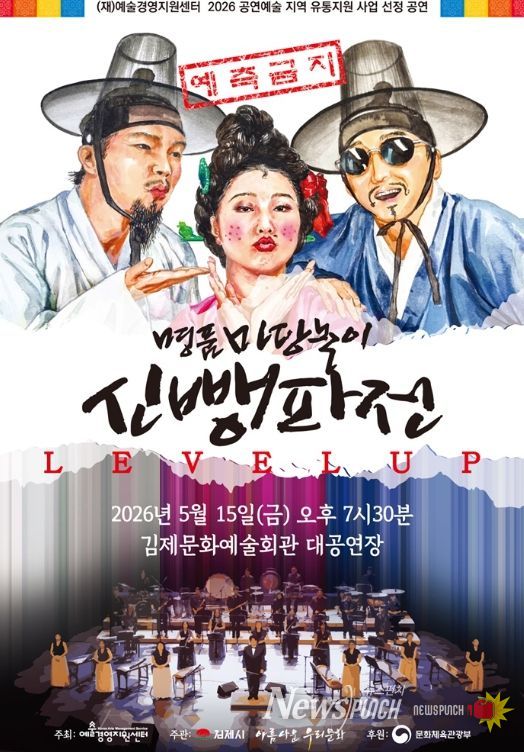 뉴스펀치 정홍균 기자 | 판소리와 국악이 보여주는 최고의 무대 ‘마당놀이 신뺑파전’을 오는 5월 15일 오후 7시 30분 김제문화예술회관 대공연장에서 만나보자.