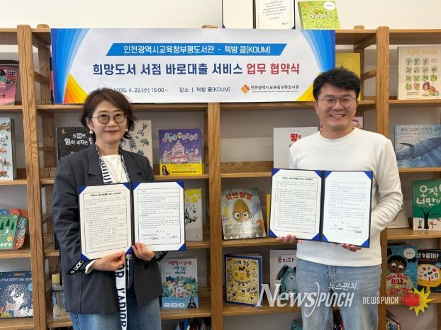 뉴스펀치 정홍균 기자 | 인천광역시교육청부평도서관은 지난 22일 '책방 쿰'과 ‘희망도서 서점 바로대출 서비스’ 업무협약을 체결했다.