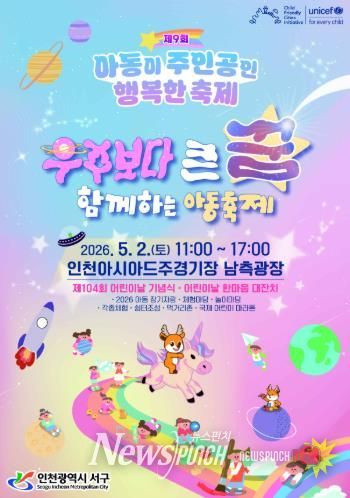 뉴스펀치 정홍균 기자 | 인천 서구는 제104회 어린이날을 맞이하여 오는 5월 2일 오전 11시부터 오후5시까지 인천아시아드주경기장 남측광장에서 제9회 아동이 주인공인 행복한 축제를 개최한다.