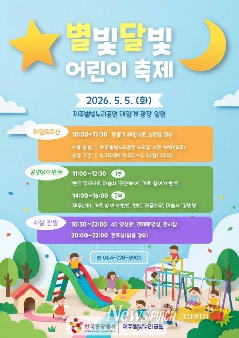 뉴스펀치 김용희 기자 | 제주별빛누리공원은 어린이날을 맞아 5월 5일 오전 10시 공원 내 태양계 광장에서 ‘2026 별빛달빛 어린이 축제’를 개최한다.