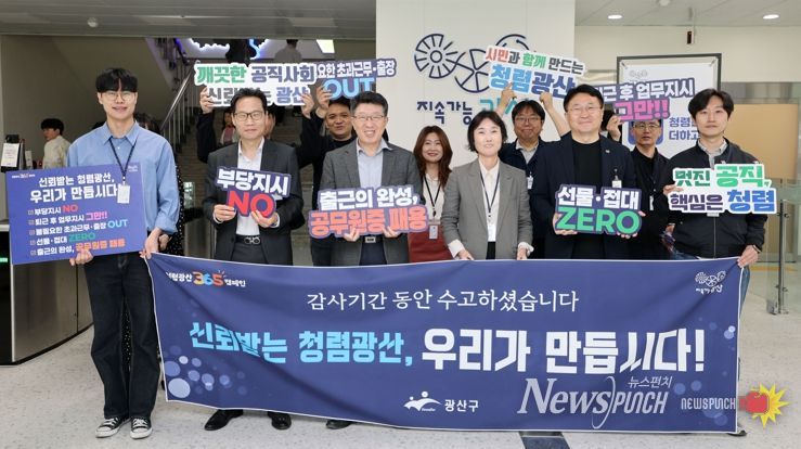 뉴스펀치 김용희 기자 | 광주 광산구가 24일 구청 1층 로비에서 공직자들을 대상으로 청렴광산 365캠페인을 진행했다.