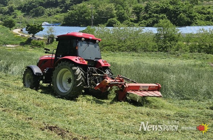 뉴스펀치 정홍균 기자 | 무주군이 농번기를 맞아 '농작업 대행 서비스' 제공에 주력하고 있다. 무주군에 따르면 트랙터, 자주형 베일러 등 12종 48대를 활용해 하우스 정지 등 농업 현장의 필수 작업을 대행하고 있다.