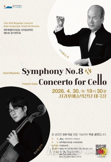 뉴스펀치 김용희 기자 | 서귀포시는 4월 30일 19시 30분 서귀포예술의전당 대극장에서 ‘제주특별자치도립 서귀포관악단 제91회 정기연주회’를 개최한다.