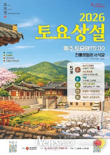 뉴스펀치 김용희 기자 | 광주문화재단 전통문화관은 오는 5월 2일 오후 3시, 네 번째 토요상설공연 무대를 선보인다. 이번 공연은 가야금 산조와 판소리를 통해 전통음악의 깊이와 아름다움을 시민들에게 전달하는 무대로 마련된다.