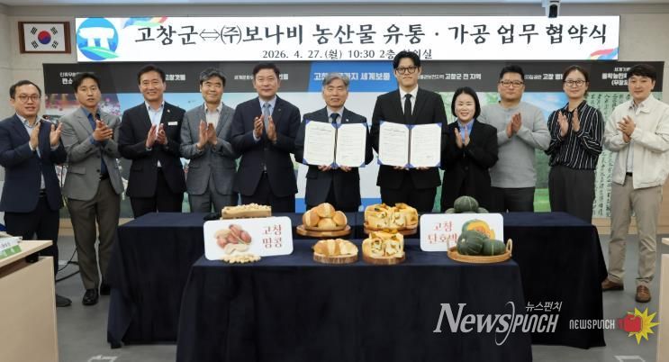 협약식에는 김영식 고창군수 권한대행을 비롯한 ㈜보나비 오민우 대표이사 및 마케팅 관계자, 지역 가공업체 관계자 등이 참석했다.