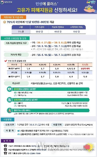 뉴스펀치 박상훈 기자 | 서울 성동구가 고유가와 물가 상승으로 늘어난 구민 생활 부담을 완화하고 지역 내 소비를 촉진하기 위한 ‘고유가 피해지원금’ 지급을 4월 27일부터 시작한다고 밝혔다.