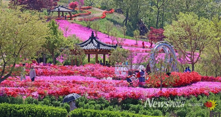 특히, 4월중순부터 본격 개화한 꽃잔디는 대지를 뒤덮은 분홍빛 융단을 깔아 놓은 듯한 장관을 연출하고 있으며, 이어 개화를 시작한 철쭉은 선명한 색감으로 공간의 깊이를 더해 방문객들의 감탄을 자아내고 있다.
