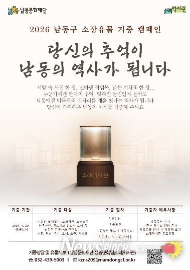 남동문화재단은 소래역사관을 중심으로 ‘2026 남동구 소장유물 기증 캠페인’을 오는 4월 20일부터 연중 상시 운영한다고 28일 밝혔다.