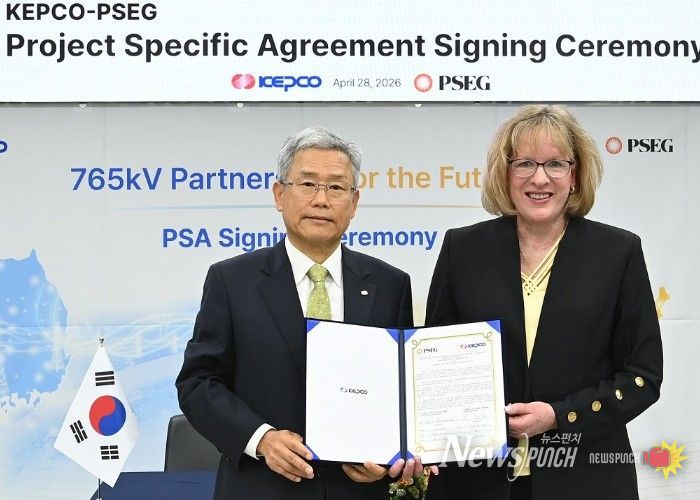 뉴스펀치 최영남 기자 | 한국전력이 4월 28일 서울 양재동 한전 아트센터에서 미국 에너지기업 PSEG社와 765kV 초고압 송전망 사업 협력을 위한 계약을 체결했다.