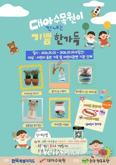 뉴스펀치 정홍균 기자 | 전북특별자치도는 대아수목원이 제104회 어린이날을 맞아 5월 2일부터 5일까지 어린이와 가족이 함께 즐길 수 있는 특별행사를 운영한다고 28일 밝혔다.