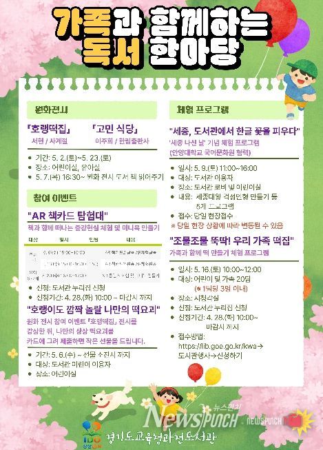 뉴스펀치 박상훈 기자 | 경기도교육청과천도서관이 5월 가정의 달을 맞아 ‘가족과 함께하는 독서 한마당’을 운영한다.