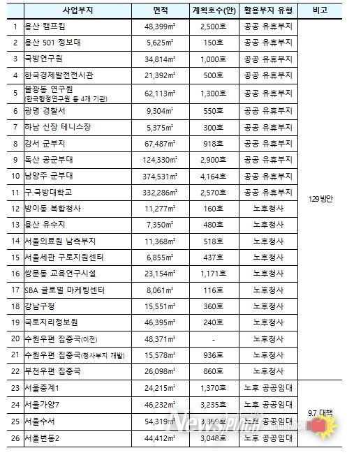 특히, 이번 국무회의 시 의결된 물량 중 1.29 방안 물량은 총 2.2만 호 규모이며, 이 중 1.3천 호와 (예비타당성조사 비대상인) 소규모 사업 등 1.6천 호를 합하여 총 2.9천 호를 ’27년 착공할 계획이다.