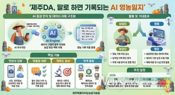 뉴스펀치 김용희 기자 | 제주특별자치도 농업기술원은 인공지능(AI)을 활용한 영농일지 통합 고도화 사업을 5월부터 본격 추진한다고 밝혔다.