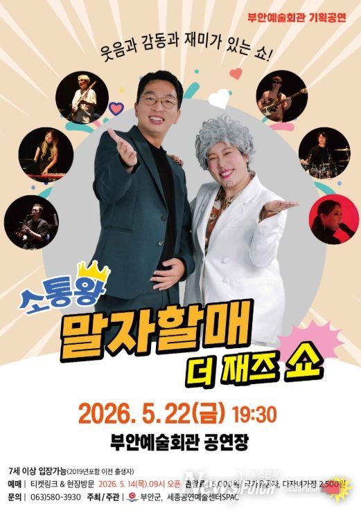 뉴스펀치 정홍균 기자 | 부안군은 오는 5월 22일 오후 7시 30분 부안예술회관 공연장에서 기획 공연 ‘소통왕 말자할매 더 재즈 SHOW’를 공연한다고 밝혔다.