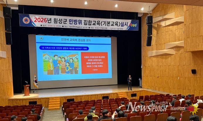 뉴스펀치 조평훈 기자 | 횡성군이 민방위 대원의 재난 대응 역량 강화를 위해 4월 29일 횡성문화예술회관 대강당에서 ‘2026년 민방위 집합교육’을 실시한다고 밝혔다.