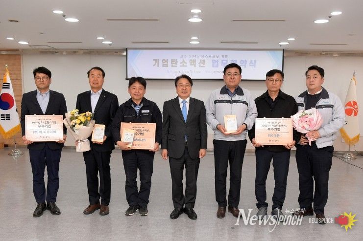 광주광역시(시장 강기정)는 30일 시청 중회의실에서 지역 기업의 온실가스 감축을 지원하기 위한 ‘2026 기업탄소액션 업무협약 및 우수기업 시상식’을 개최했다.