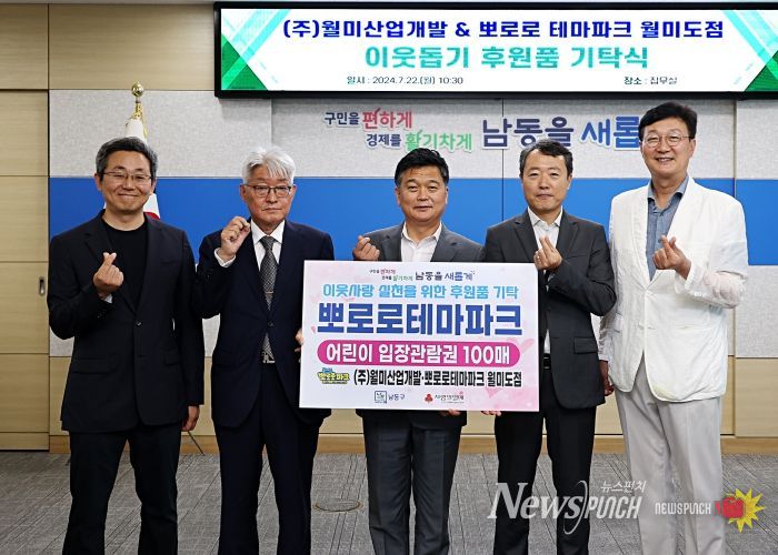 뉴스펀치 김성남 기자 | 인천시 남동구는 최근 ㈜월미산업개발과 뽀로로테마파크 월미도점으로부터 240만 원 상당의 어린이 입장권 100매를 기탁받았다고 23일 전했다.