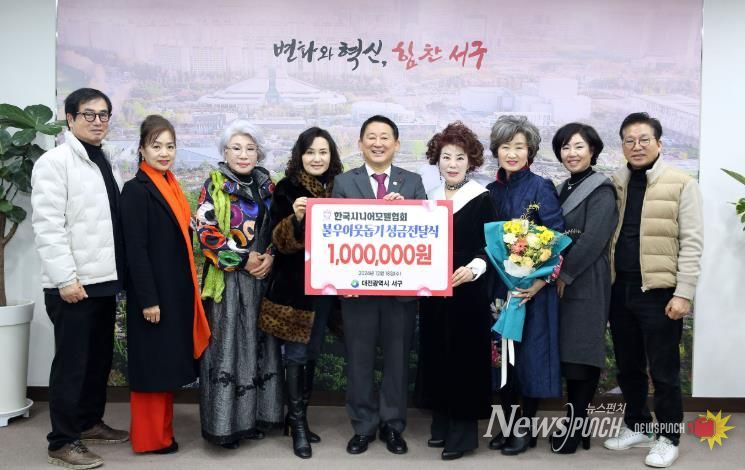 뉴스펀치 이현승 기자 | 대전 서구는 지난 18일 갑천누리실에서 한국시니어모델협회로부터 이웃돕기 성금 100만 원을 기탁받았다.