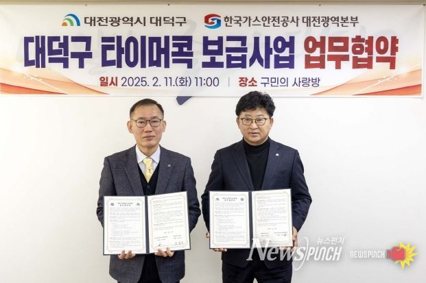대덕구는 11일 한국가스안전공사 대전광역본부와 ‘대덕구 타이머콕 보급사업 업무협약(MOU)’을 맺었다고 밝혔다.
